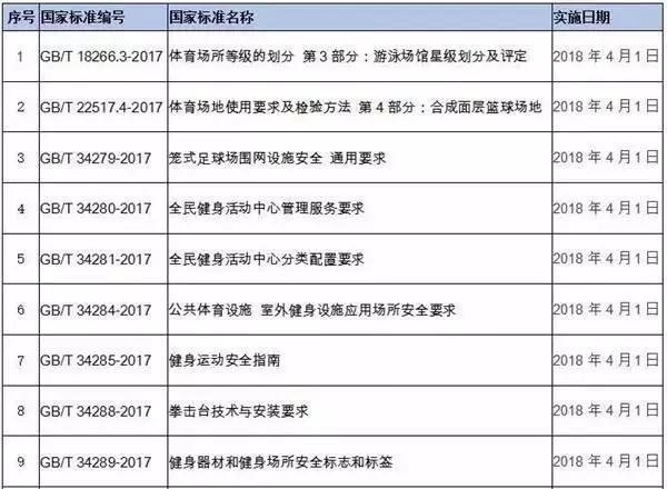 為助推全民健身工作發(fā)展,助力體育強(qiáng)國建設(shè),9月7日,國家標(biāo)準(zhǔn)化管理委員會正式發(fā)布了2017年第22號國家標(biāo)準(zhǔn)公告。批準(zhǔn)發(fā)布的數(shù)百項(xiàng)國家標(biāo)準(zhǔn)中,包括了17項(xiàng)體育國家標(biāo)準(zhǔn),涉及全民健身場地設(shè)施、公共體育設(shè)施安全、健身產(chǎn)業(yè)和健身場館服務(wù)評價等方面。