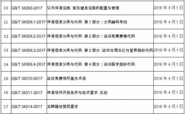 國家標(biāo)準(zhǔn)公告中發(fā)布的體育國家標(biāo)準(zhǔn)清單