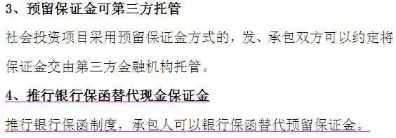 關(guān)于工程保證金,國(guó)務(wù)院和住建部近期進(jìn)行大刀闊斧的改革,首先把質(zhì)量保證金預(yù)留比例上限由5%降至3%,有效減少建筑業(yè)企業(yè)資金占?jí)海a(bǔ)充流動(dòng)資金,減少銀行貸款,降低企業(yè)經(jīng)營(yíng)成本;另一方面大力推廣推行銀行保函、擔(dān)保公司保函和保險(xiǎn)保函三種形式的履約保證制度。進(jìn)一步為建筑業(yè)企業(yè)減負(fù),企業(yè)資金充裕后,可以在更新機(jī)械設(shè)備、技術(shù)研發(fā)、人員培訓(xùn)等方面加大投入,有利于提高工程質(zhì)量水平。