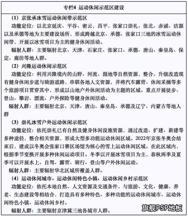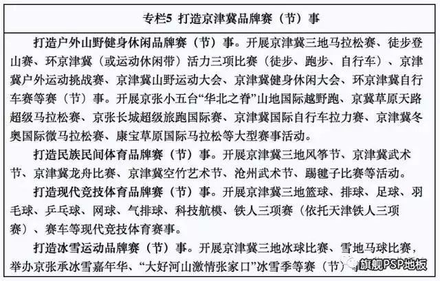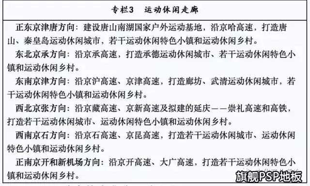 《規(guī)劃》提出了三地體育休閑產(chǎn)業(yè)到2025年發(fā)展主要目標(biāo),三地功能定位,結(jié)合京津冀地形地貌、氣候條件等自然資源,構(gòu)建“國際知名運(yùn)動(dòng)休閑目的地”、“國家運(yùn)動(dòng)休閑區(qū)”、“環(huán)京津冀運(yùn)動(dòng)休閑帶”、“運(yùn)動(dòng)休閑走廊”的基本空間布局等。