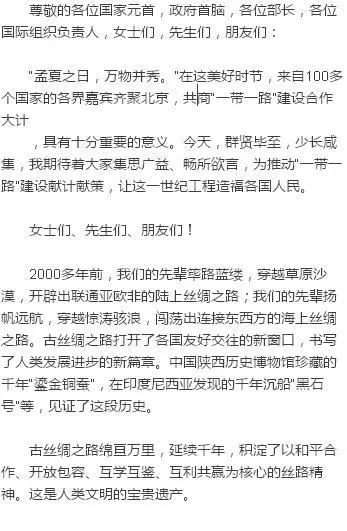 上午,在“一帶一路”國際合作高峰論壇開幕式上,習(xí)近平主席發(fā)表題為《攜手推進(jìn)“一帶一路”建設(shè)》主旨演講。