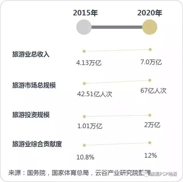據(jù)國家旅游局統(tǒng)計,2016年我國旅游業(yè)實現(xiàn)總收入4.65萬億,較2015年增長11.4%。全年旅游投資超1.2萬億元,旅游業(yè)對GDP的綜合貢獻為10.8%。到2020年旅游業(yè)總收入將達到7.0萬億,旅游市場總規(guī)模達到67億人次(平均每人每年旅游約5次),旅游投資規(guī)模達到2萬億,旅游業(yè)對GDP的綜合貢獻達到12%。未來4年,伴隨著多項政策的實施和國民經(jīng)濟的進一步發(fā)展,我國旅游業(yè)將進入了提質(zhì)增效的攻堅階段,尤其是在“旅游+”、“一帶一路”旅游合作等戰(zhàn)略背景下,中國旅游市場的巨大紅利正在并將持續(xù)釋放,而近幾年興起的體育旅游、小鎮(zhèn)旅游也將成為新時代的寵兒。