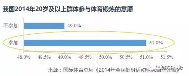 2014年我國體育人口占比為34%,低于歐盟平均水平的58%。雖然我國龐大的人口基數(shù)一定程度上會拉低比例,但與歐盟“全民健身”的市場局面相比,差距則驟然顯現(xiàn)。