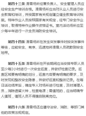 第三十四條 應(yīng)在雪場(chǎng)營(yíng)業(yè)前和營(yíng)業(yè)后對(duì)營(yíng)業(yè)區(qū)域進(jìn)行巡查,清除隱患。營(yíng)業(yè)期間應(yīng)對(duì)營(yíng)業(yè)區(qū)域進(jìn)行巡查,重點(diǎn)區(qū)域加大巡查頻次。
