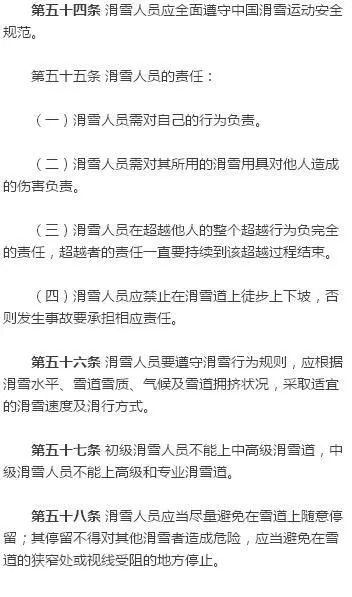 第七條 應(yīng)在接待處或入口處等醒目位置公示“滑雪人員須知”、“滑雪人員行為與安全守則”。
