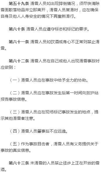 第十四條 因天氣原因或遭遇突發(fā)事件對(duì)滑雪造成危險(xiǎn)時(shí),應(yīng)及時(shí)封閉部分或全部雪道。
