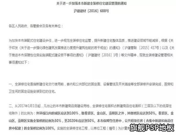 今年8月18日,上海住建委發(fā)布《關(guān)于進(jìn)一步加強(qiáng)本市新建全裝修住宅建設(shè)管理的通知》(滬建建材〔2016〕688號(hào))。